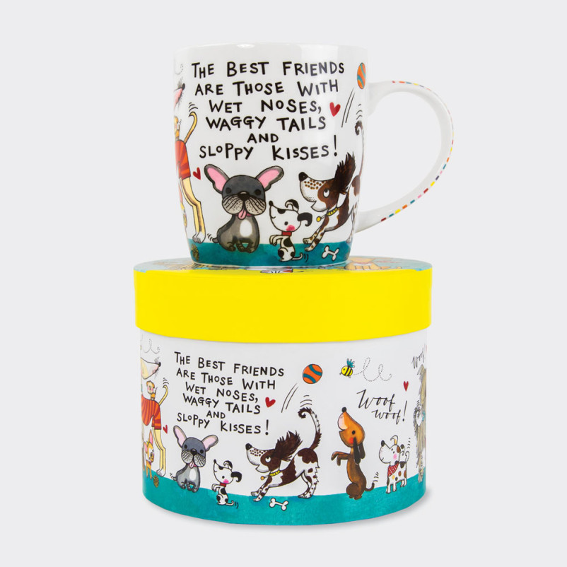 Looking for the perfect present for a dog loving friend? This stunning Rachel Ellen mug features the words 'The best friends are those with wet noses, waggy tails and sloppy kisses' alongside beautiful Rachel Ellen dog illustrations. It comes complete with a premium quality hat style presentation box ready for gifting.