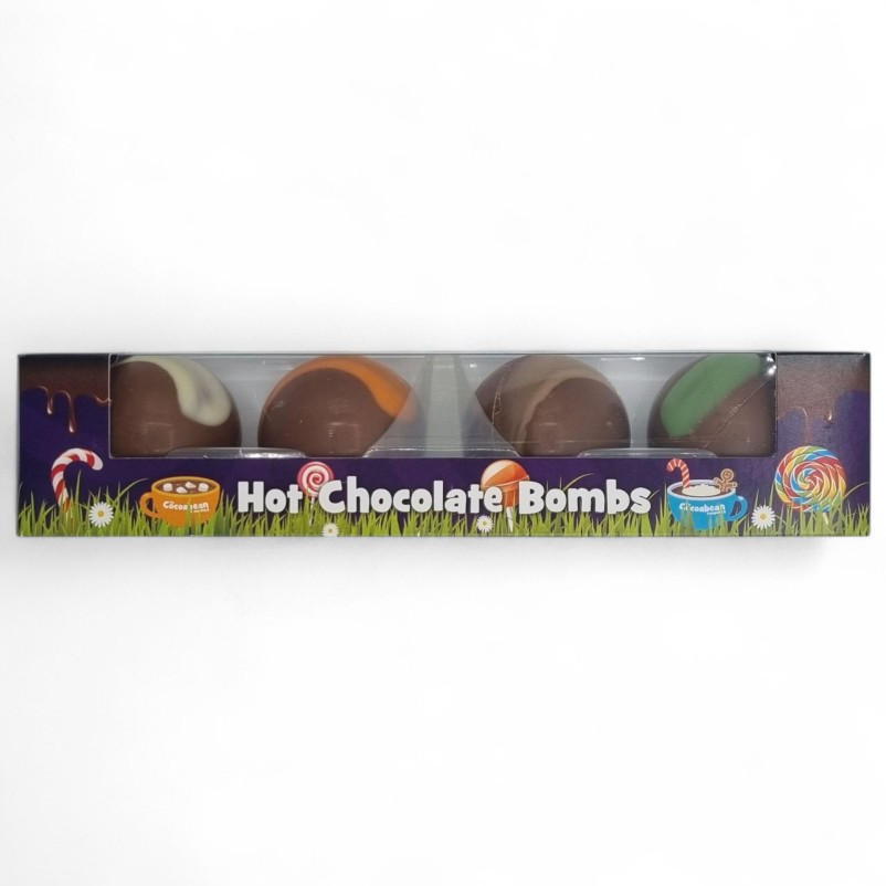 This wonderful set of 4 hot chocolate bombs includes milk, orange, mint and caramel flavours. Each bomb is beautifully decorated, made from smooth quality chocolate and packed with delicious mini marshmallows.