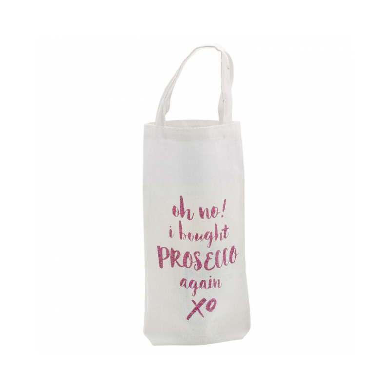 A great alternative to the normal bottle gift bags, this pink glitter canvas bag gives that extra special feeling to the gift.