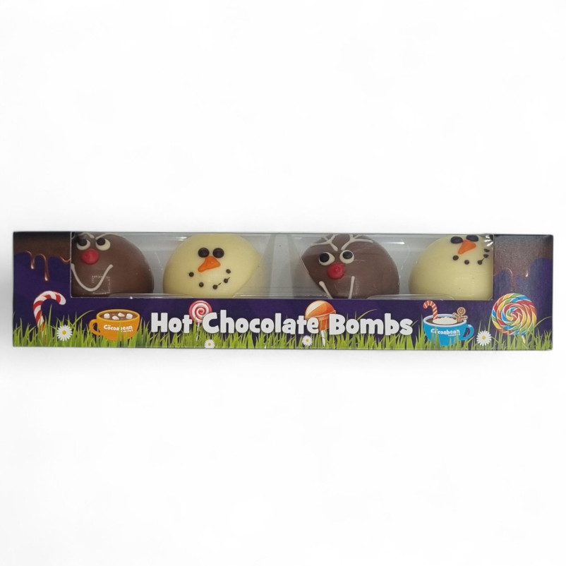 This charming set of 4 hot chocolate bombs is beautifully decorated and packaged, making it a wonderful Christmas gift or stocking filler for friends, colleagues and family.